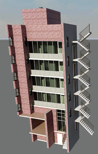 view of the new elevator addition. rendering by Bojidar Kadiev, 2011