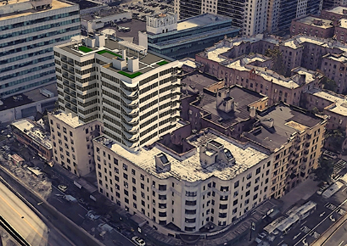A study for an eight story enlargement over an existing landmarked building with the objective to maximize the available development rights. The design esthetic is loosely inspired by the Art-Deco details and curvatures, but is in search of a contemporary rendition, which respectfully defers and complements the massing and the character of the original. Sixty four new dwellings are proposed to be added to the existing eighty one. The study is awaiting Landmarks Commision's review and approval.