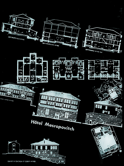 This is one of my first projects with the National Institute for Historic Landmarks in Plovdiv. The house is the largest building in the Old City of Plovdiv-the historic core of the city, part of the World Heritage List of UNESCO. It was a very ambitious enterprise, which aimed to preserve the structural integrity of the building as opposed to the commonly spread method at the time to demolish and re-build with steel, bricks, and concrete. The program was developed for a cultural center with meeting space and a small theater in the cellar, which has an independent approach from a major city artery. The project was complete by 1986 and construction started soon thereafter. Unfortunately due to lack of funds, the changed political system, and the ensuing recessions, the site stayed abandoned for 17 years. The house was condemned as a safety hazard and demolished in 2003.