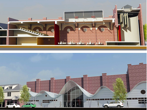 Schematic desugn proposal for the renovation of the twin theater in Westbury, New York. The project envisioned restoring the building to its former glory with a contemporary lobby and restaurant addition along one of the side streets. The theater would function both as movie presentation venue and as an event hall. Preliminary design was developed in 2010.